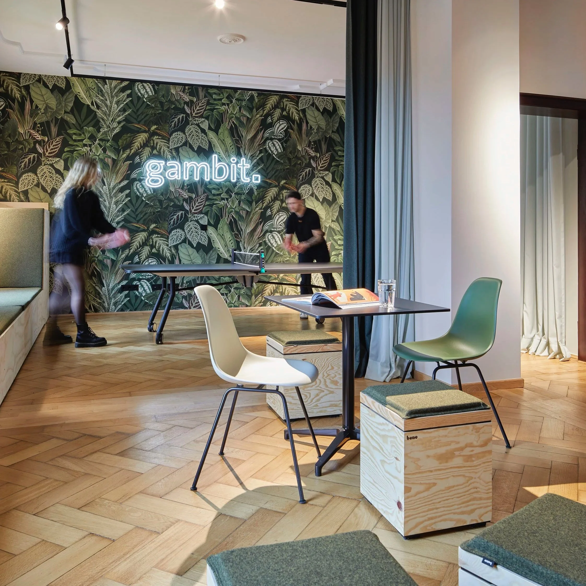 Die Kernsanierung von Gambit schafft ein offenes, helles Arbeitsumfeld mit klarer Struktur und flexiblen Zonen. Transparente Flächen, hochwertige Materialien und durchdachte Lichtführung erzeugen eine einladende Atmosphäre. Flexible Arbeitsbereiche und gemeinsame Treffpunkte fördern Austausch und Teamgeist. Architektur und Interior verschmelzen zu einem modernen, funktionalen Gesamtkonzept, das Effizienz, Offenheit und Komfort gleichermaßen vereint.