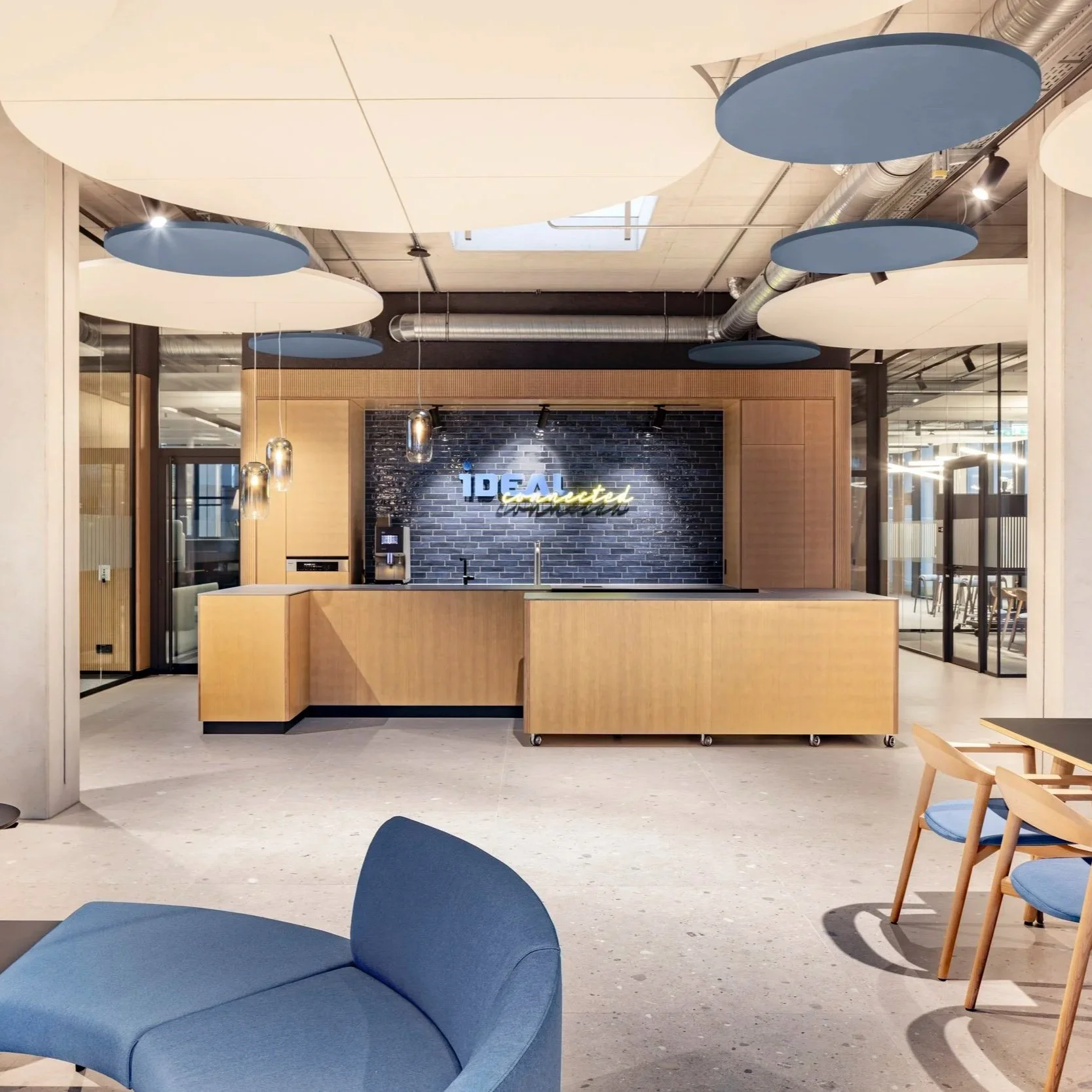Das Projekt IDEAL wurde konsequent nach biophilen Grundsätzen geplant. Form, Materialität, Farbe und Haptik orientieren sich an natürlichen Prinzipien und schaffen ein harmonisches, inspirierendes Arbeitsumfeld. Großzügige Glasflächen, natürliche Materialien und ausgewogene Farbkompositionen fördern Wohlbefinden, Konzentration und Kreativität. Architektur und Interior verschmelzen zu einem Umfeld, das sowohl funktional als auch sinnlich erlebbar ist – ein Ort, der Menschen verbindet und Raum für neue Ideen bietet.